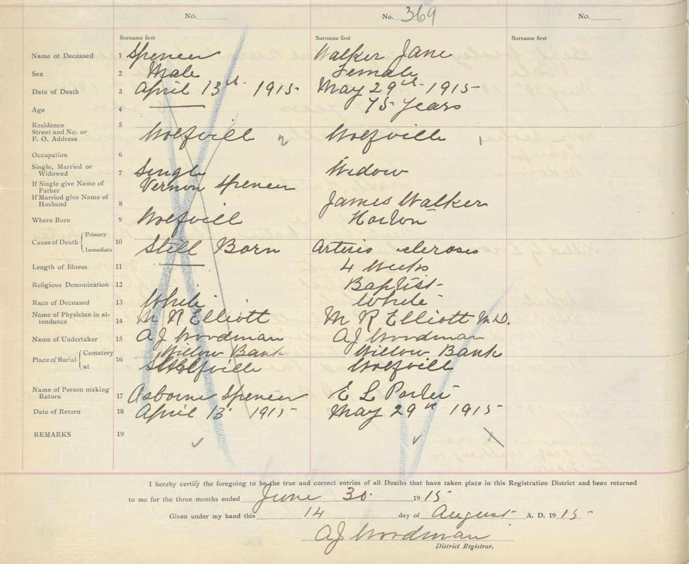 Female Death Registration: Year: 1915 book: 40 page: 96 number: 369