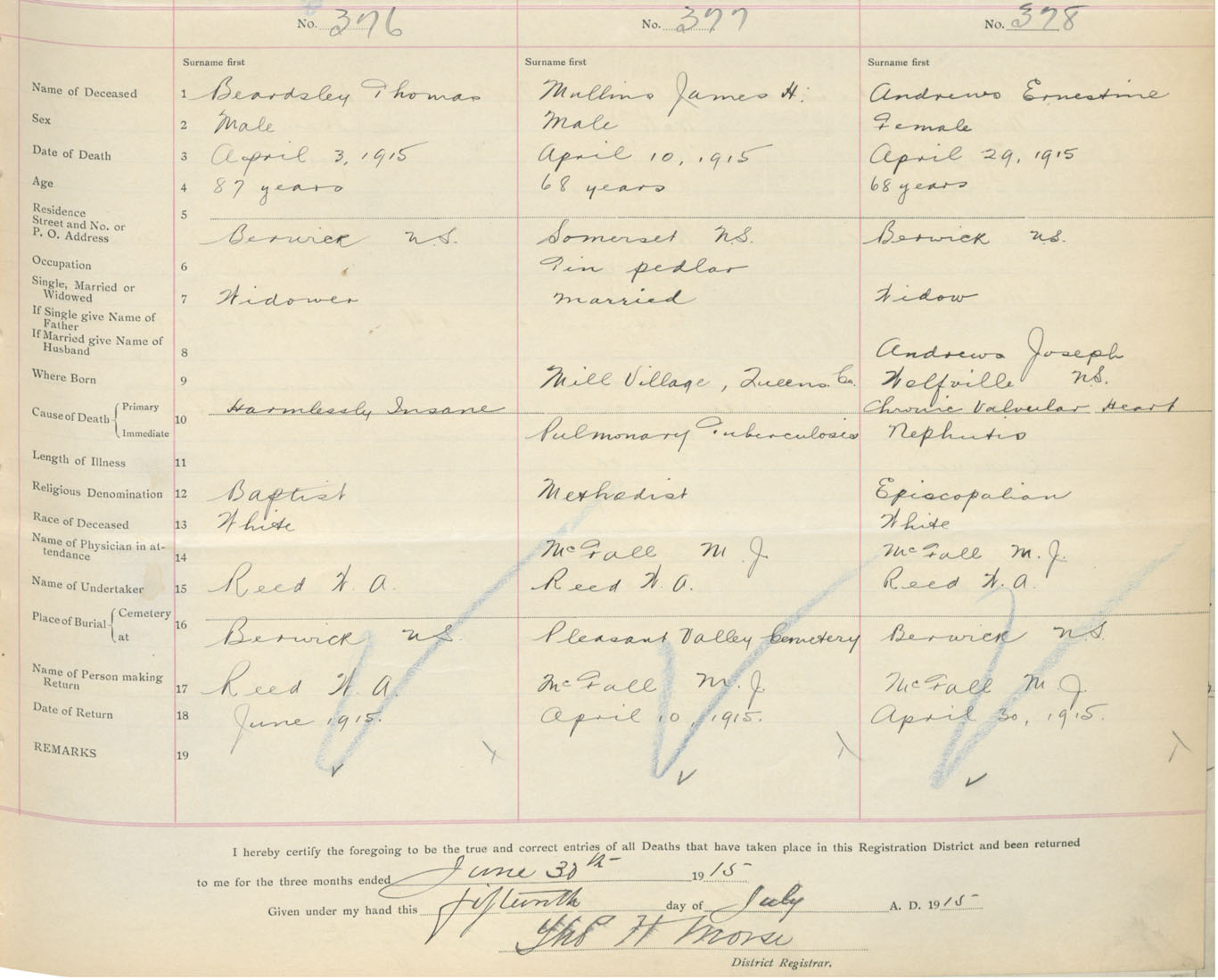 Female Death Registration: Year: 1915 book: 40 page: 99 number: 378