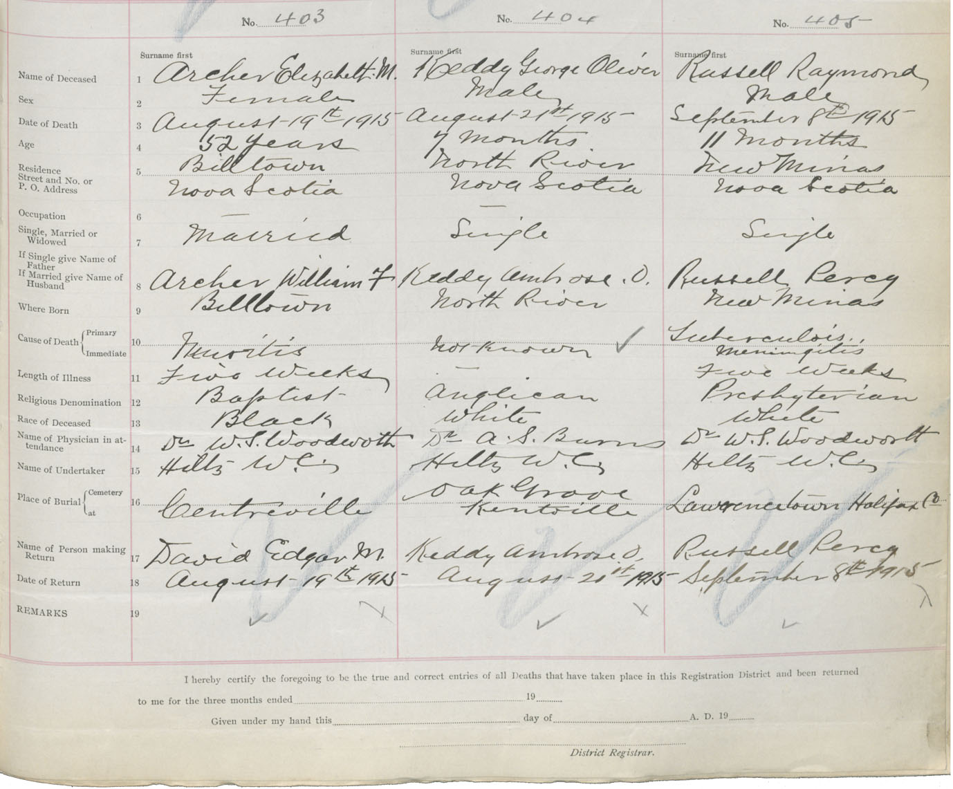Male Death Registration: Year: 1915 book: 40 page: 107 number: 405