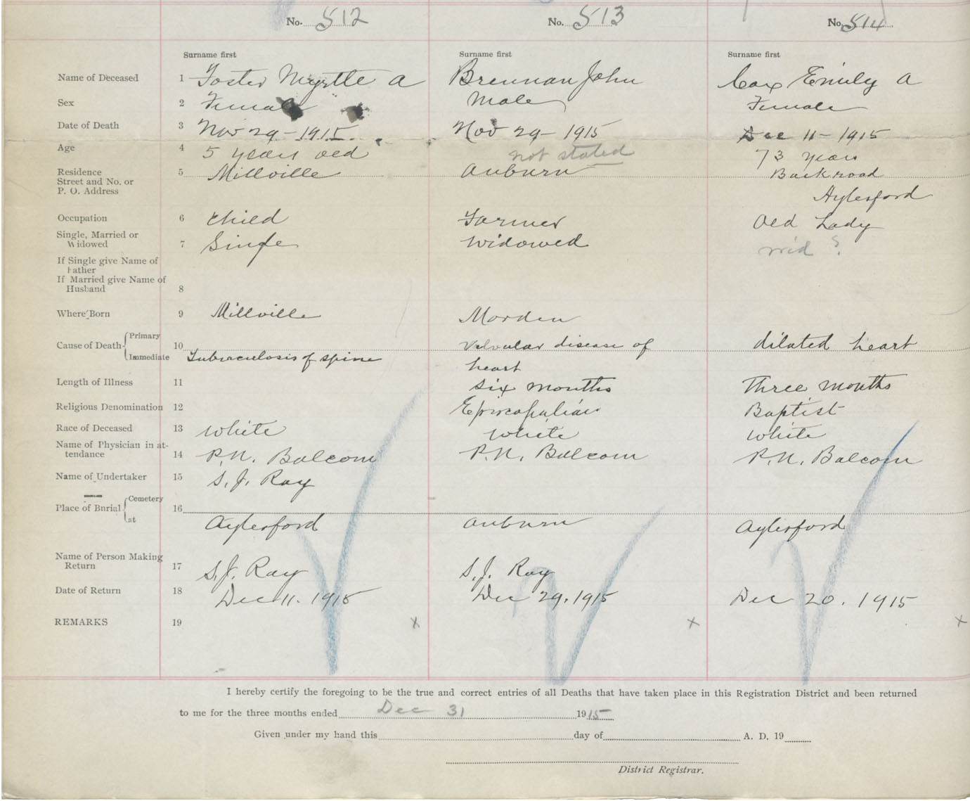 Female Death Registration: Year: 1915 book: 40 page: 138 number: 514