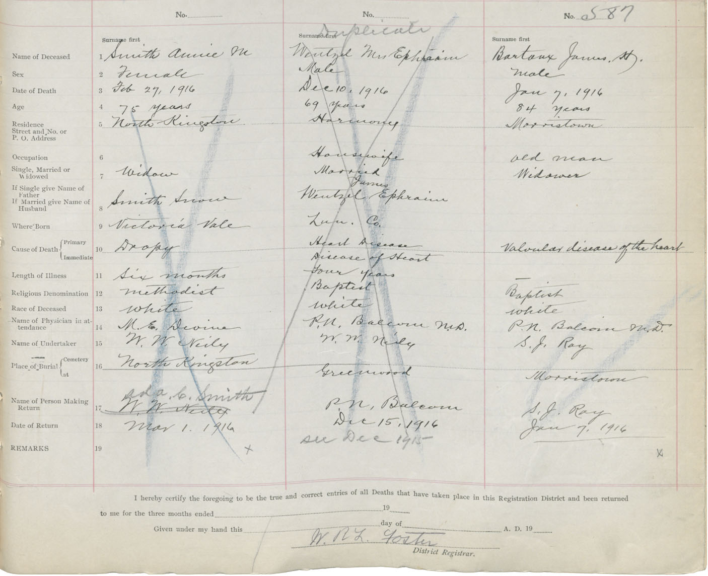 Male Death Registration: Year: 1916 book: 40 page: 155 number: 588