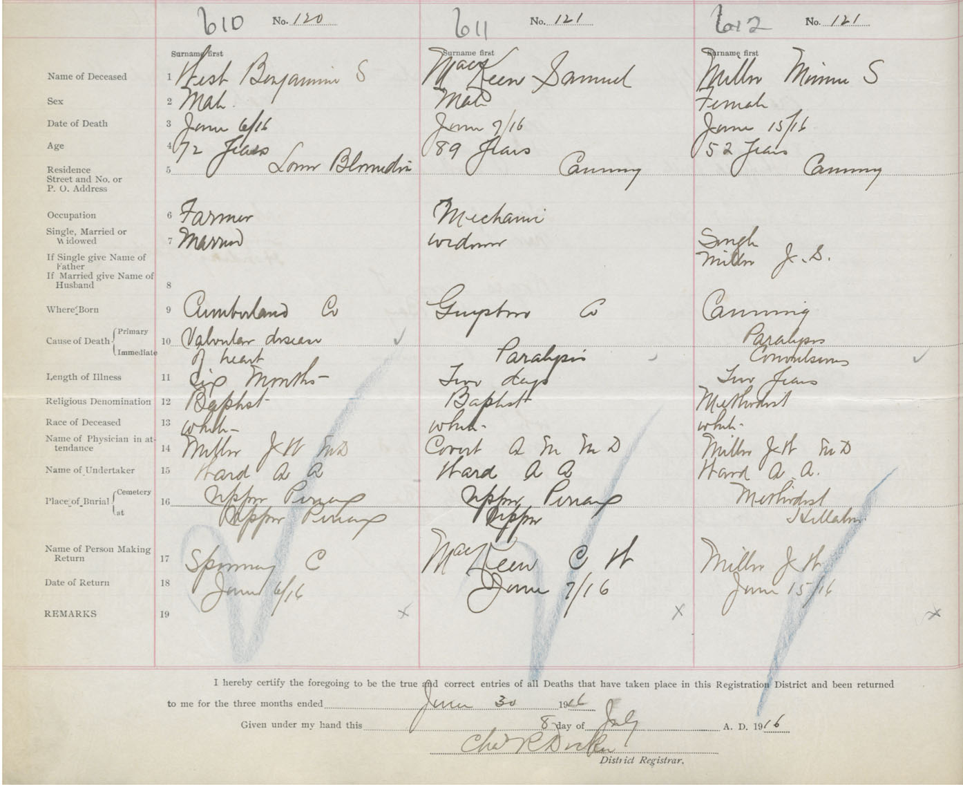 Female Death Registration: Year: 1916 book: 40 page: 162 number: 612