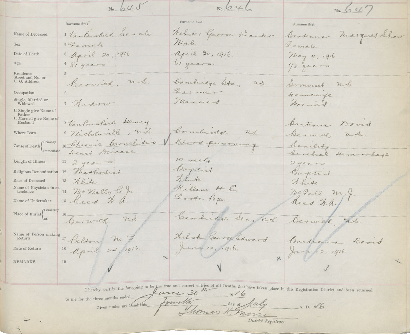 Female Death Registration: Year: 1916 book: 40 page: 173 number: 647