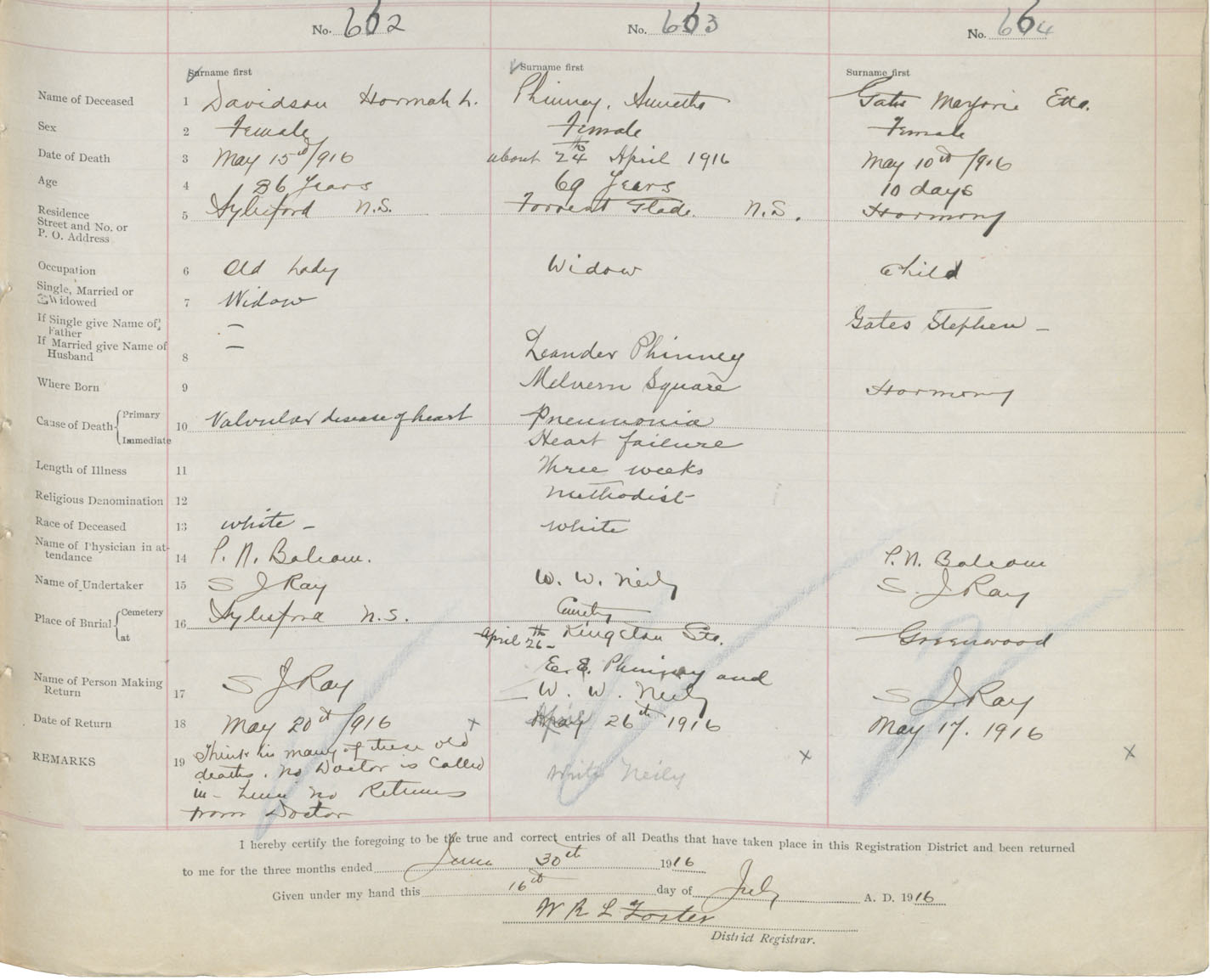 Female Death Registration: Year: 1916 book: 40 page: 177 number: 662