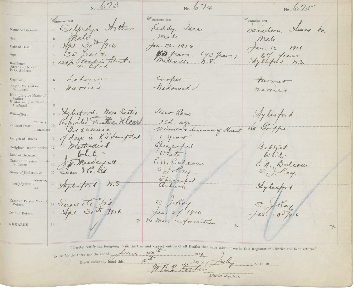Male Death Registration: Year: 1916 book: 40 page: 179 number: 673