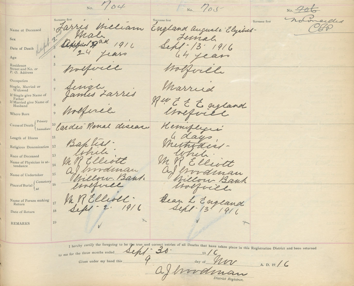 Male Death Registration: Year: 1916 book: 40 page: 187 number: 704