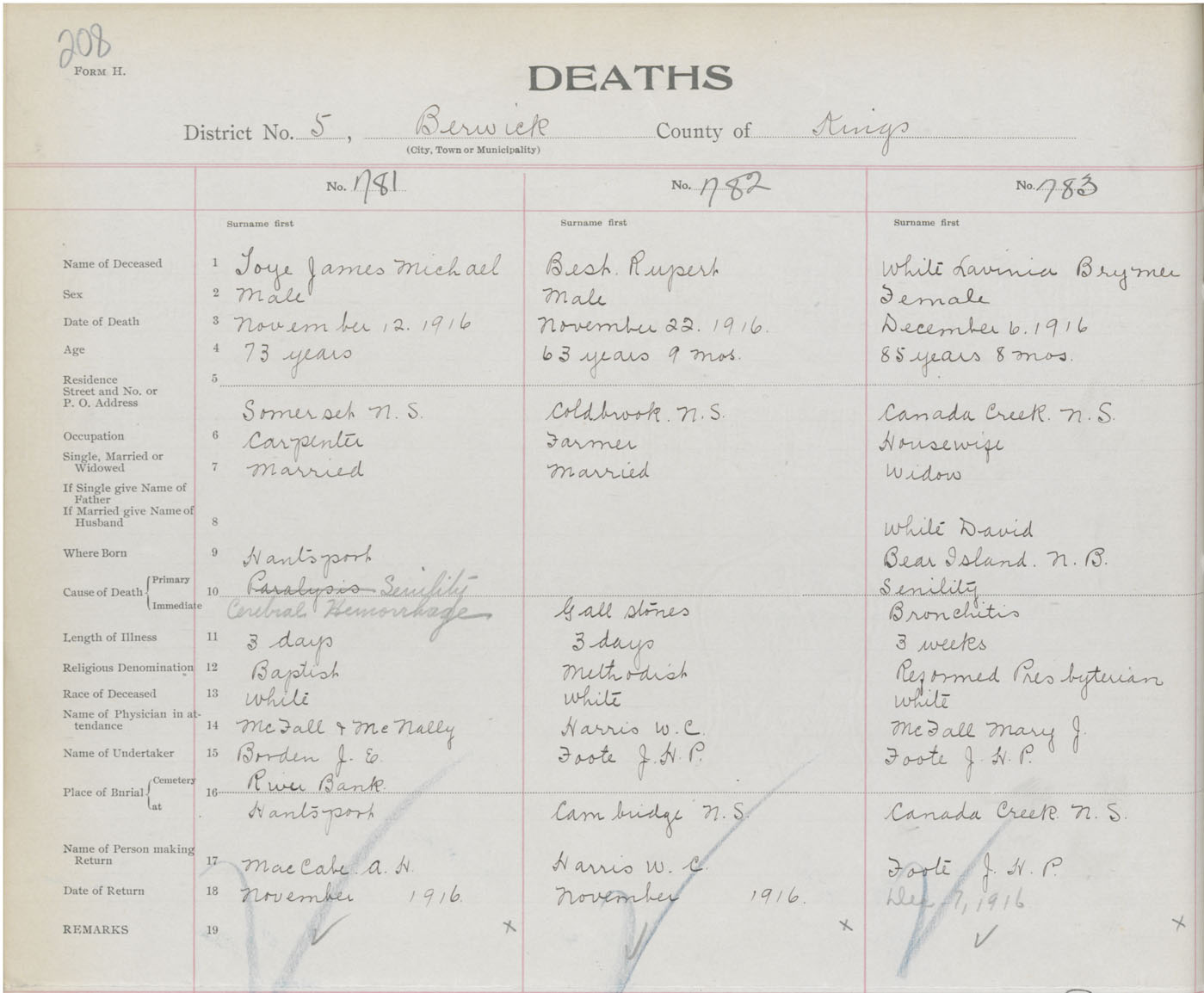 Female Death Registration: Year: 1916 book: 40 page: 10208 number: 783