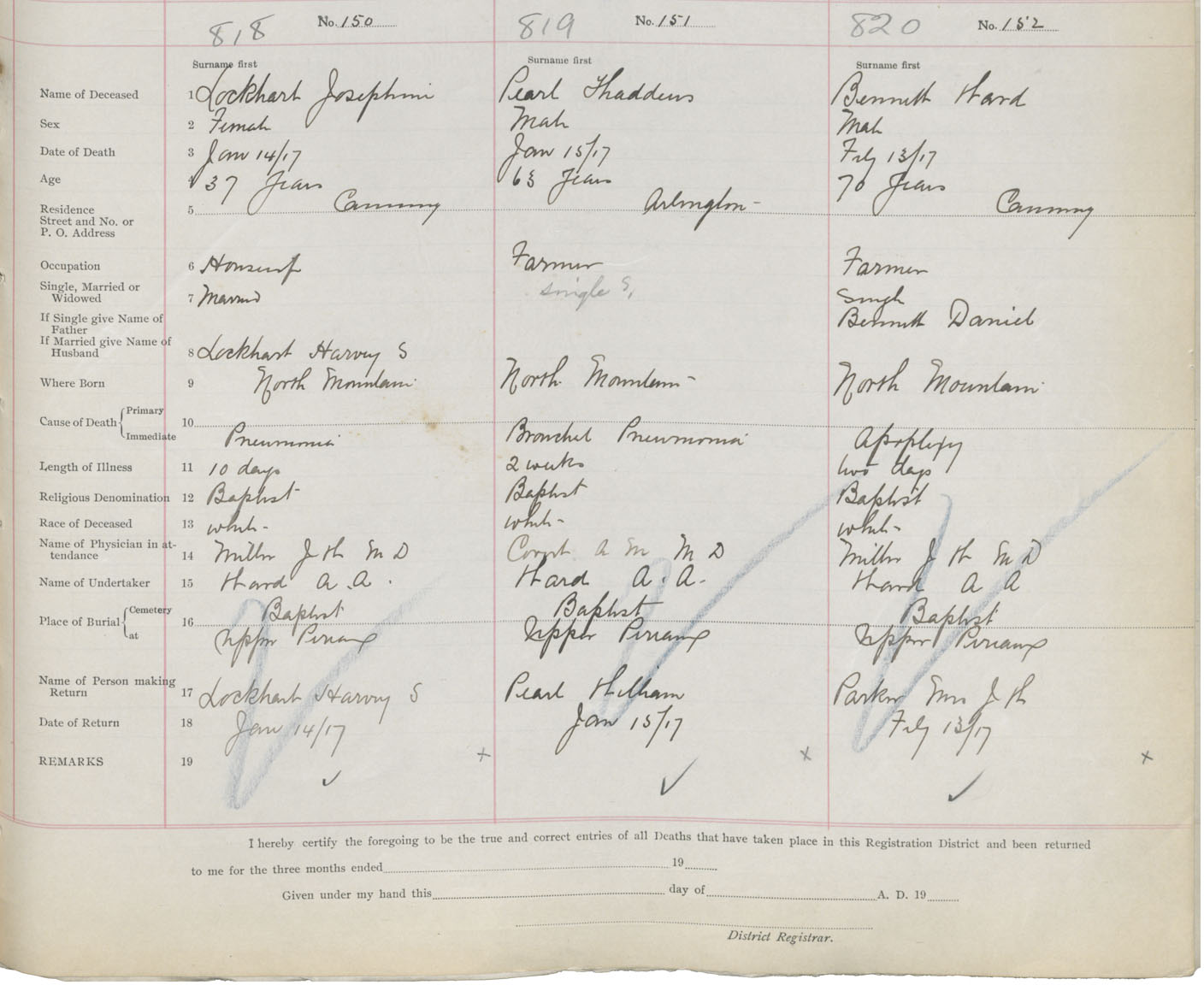 Female Death Registration: Year: 1917 book: 40 page: 219 number: 818