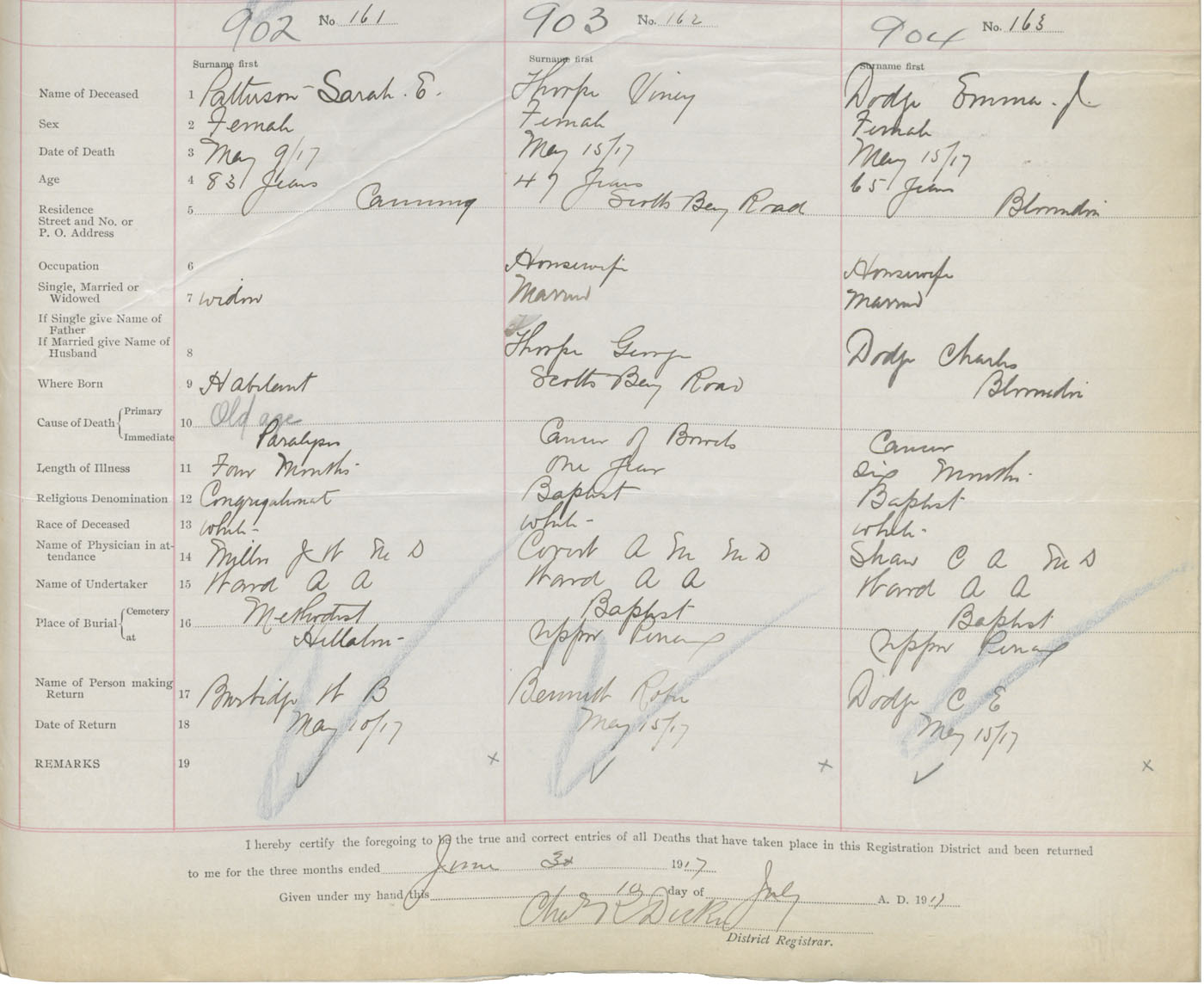 Female Death Registration: Year: 1917 book: 40 page: 239 number: 902