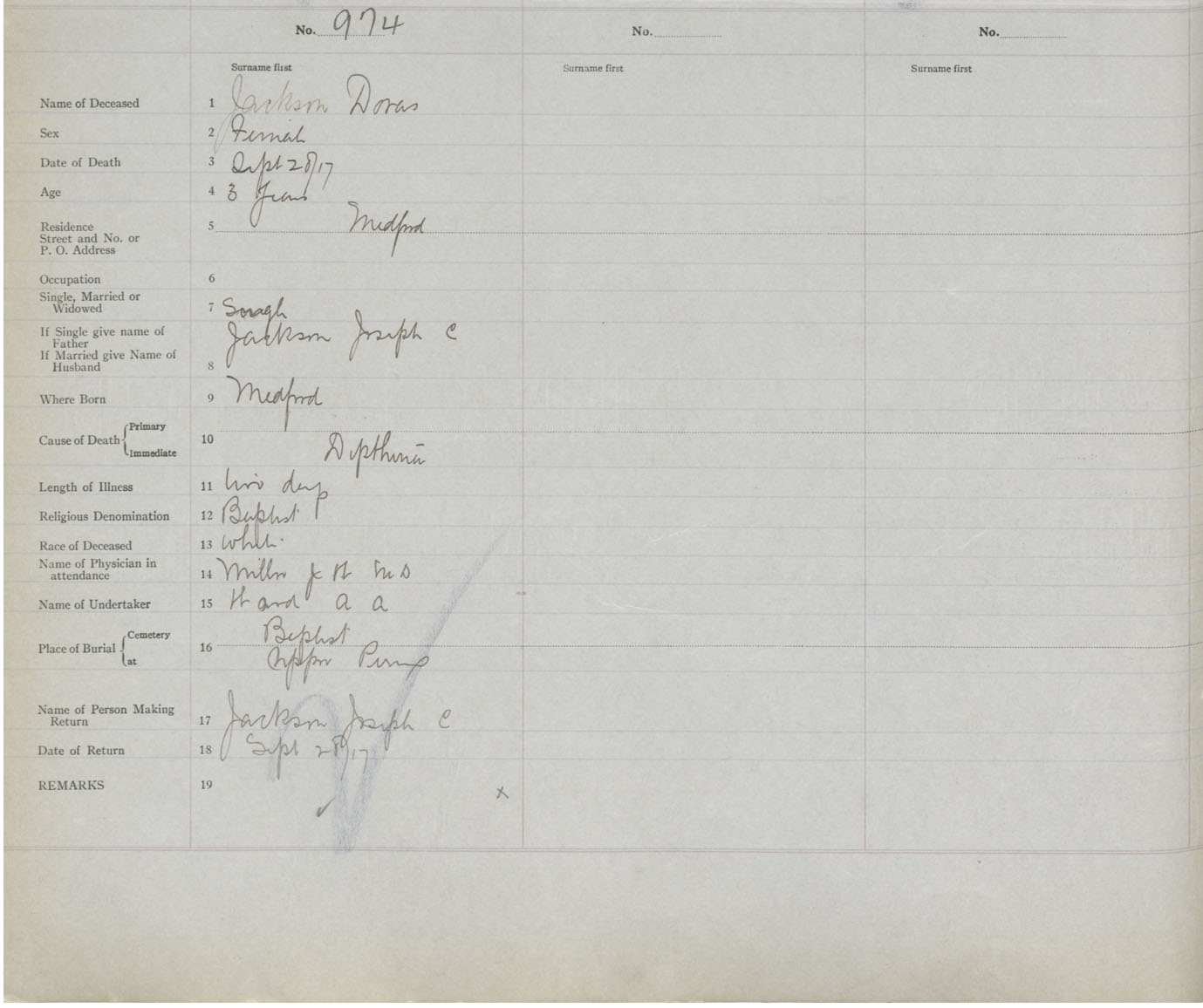 Female Death Registration: Year: 1917 book: 40 page: 358 number: 974