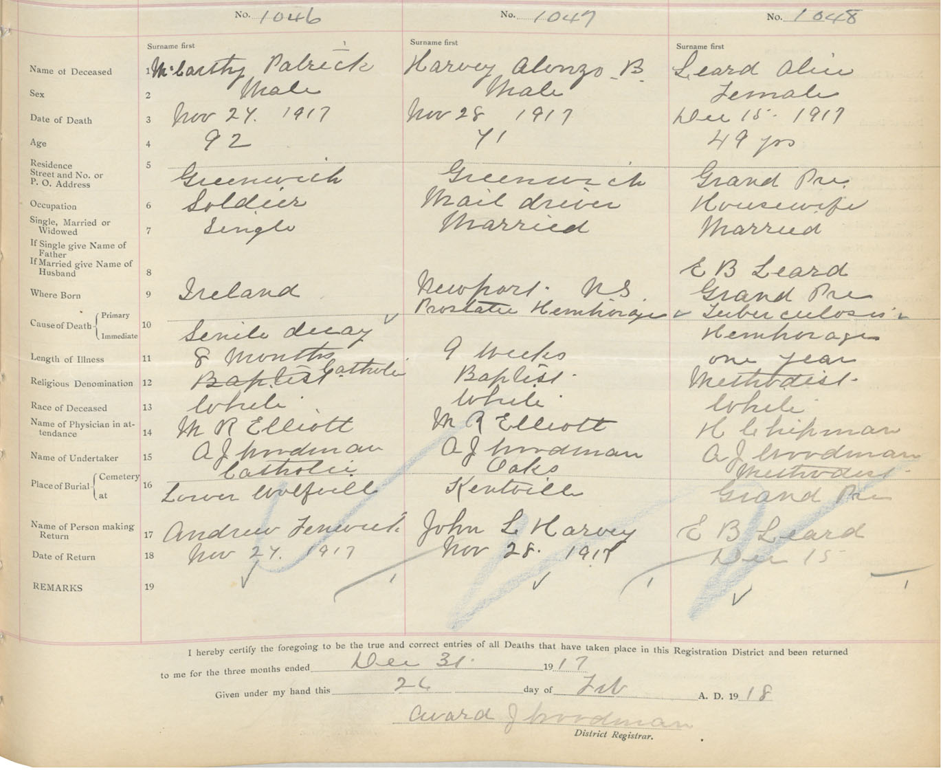 Male Death Registration: Year: 1917 book: 40 page: 379 number: 1046