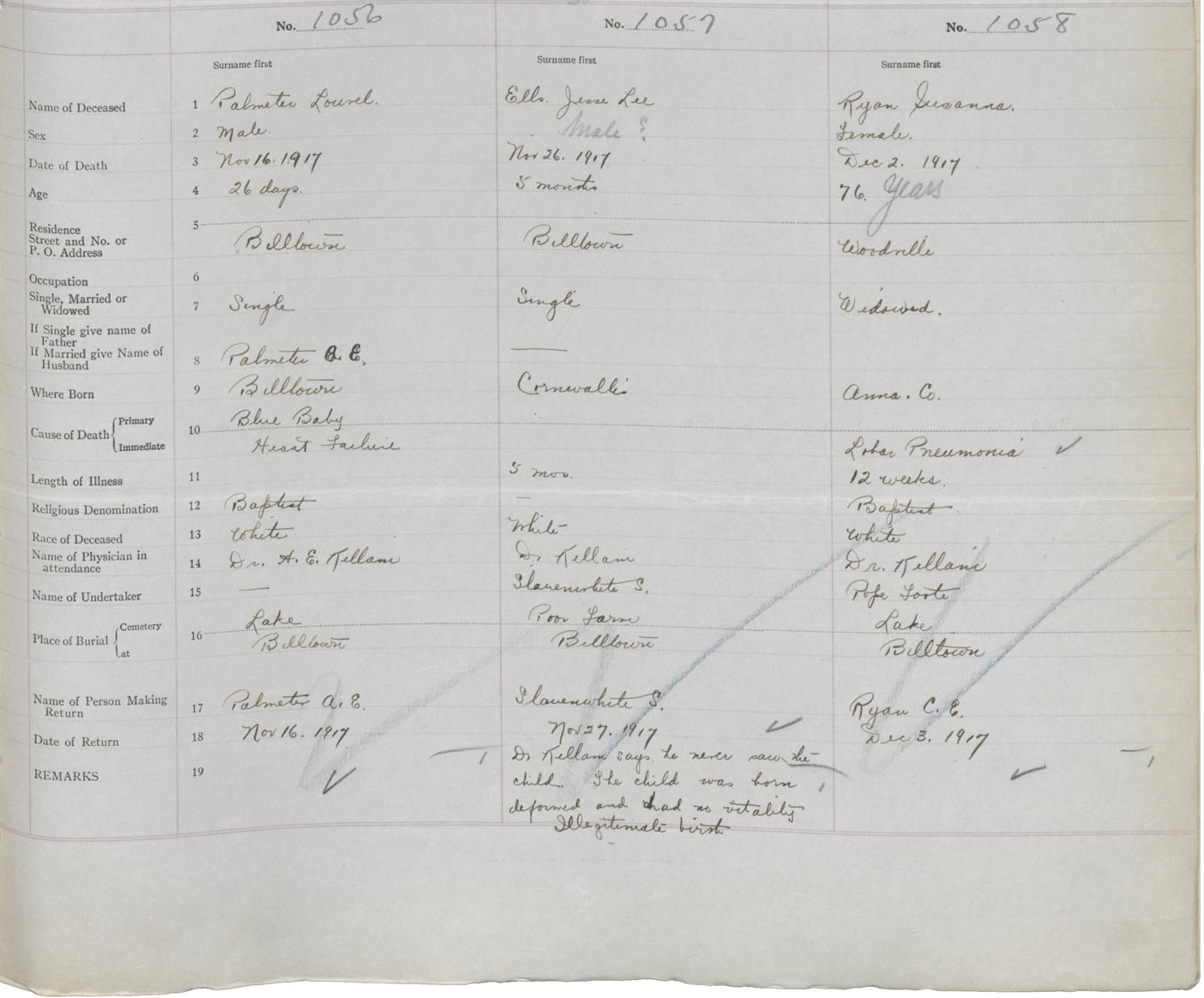 Male Death Registration: Year: 1917 book: 40 page: 381 number: 1056