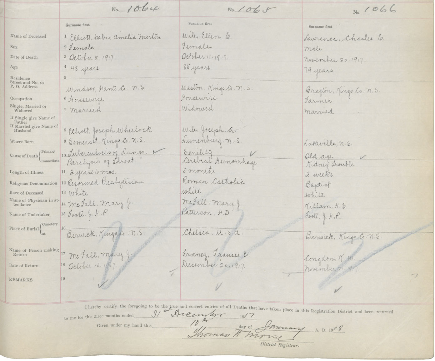 Female Death Registration: Year: 1917 book: 40 page: 383 number: 1064