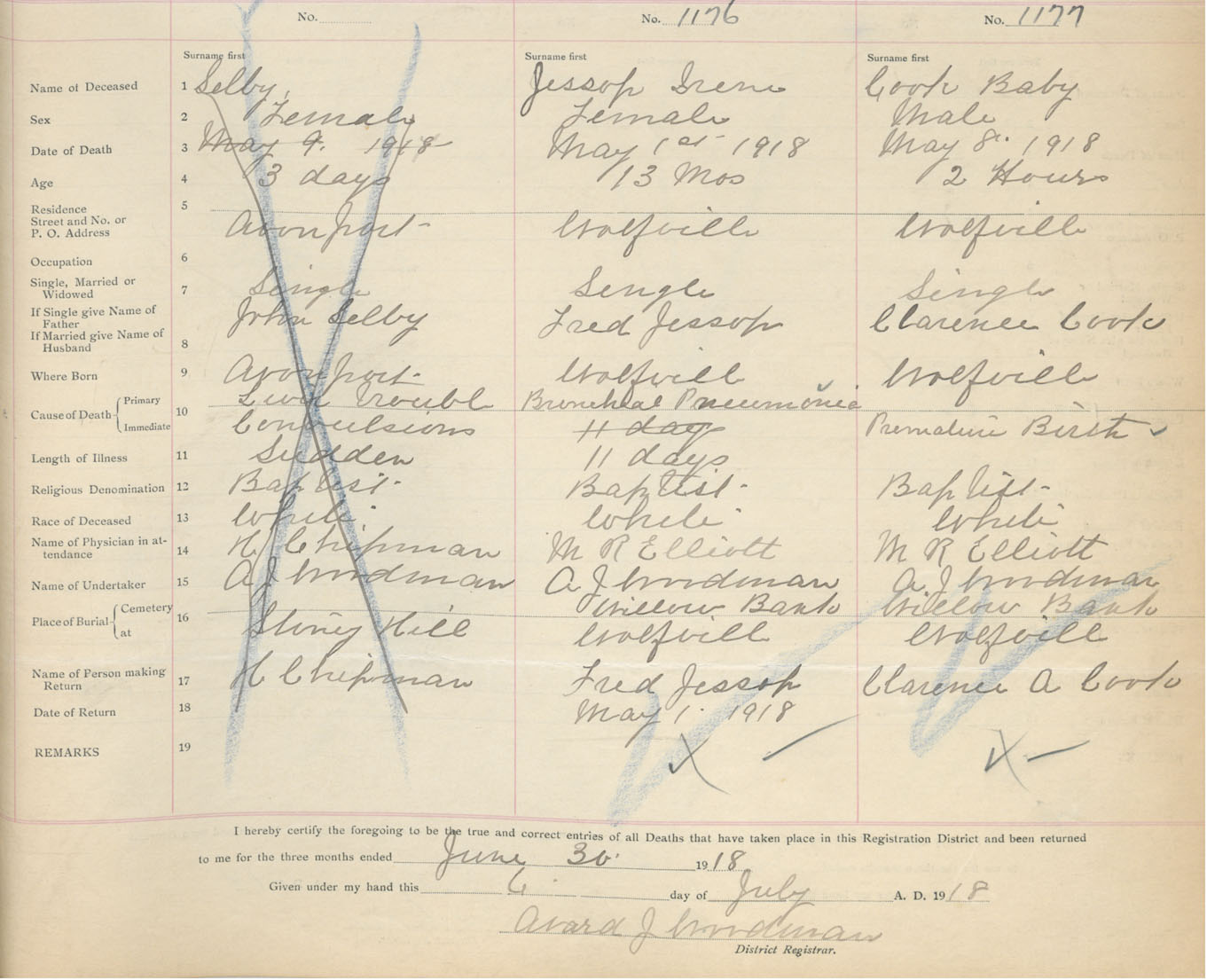 Female Death Registration: Year: 1918 book: 40 page: 413 number: 1176