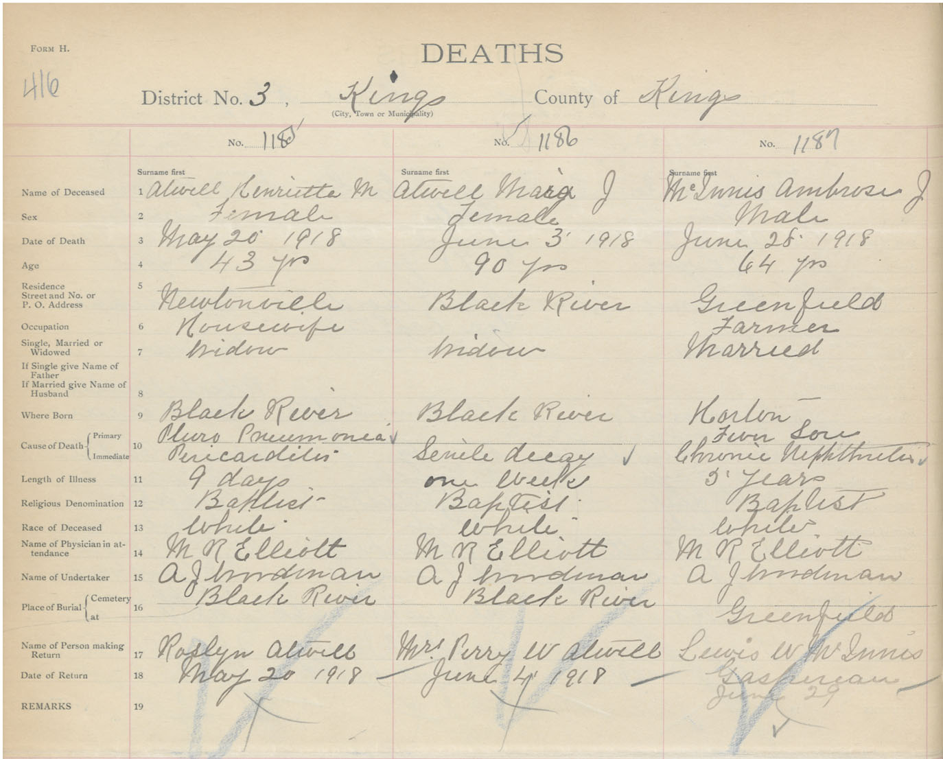 Male Death Registration: Year: 1918 book: 40 page: 416 number: 1187