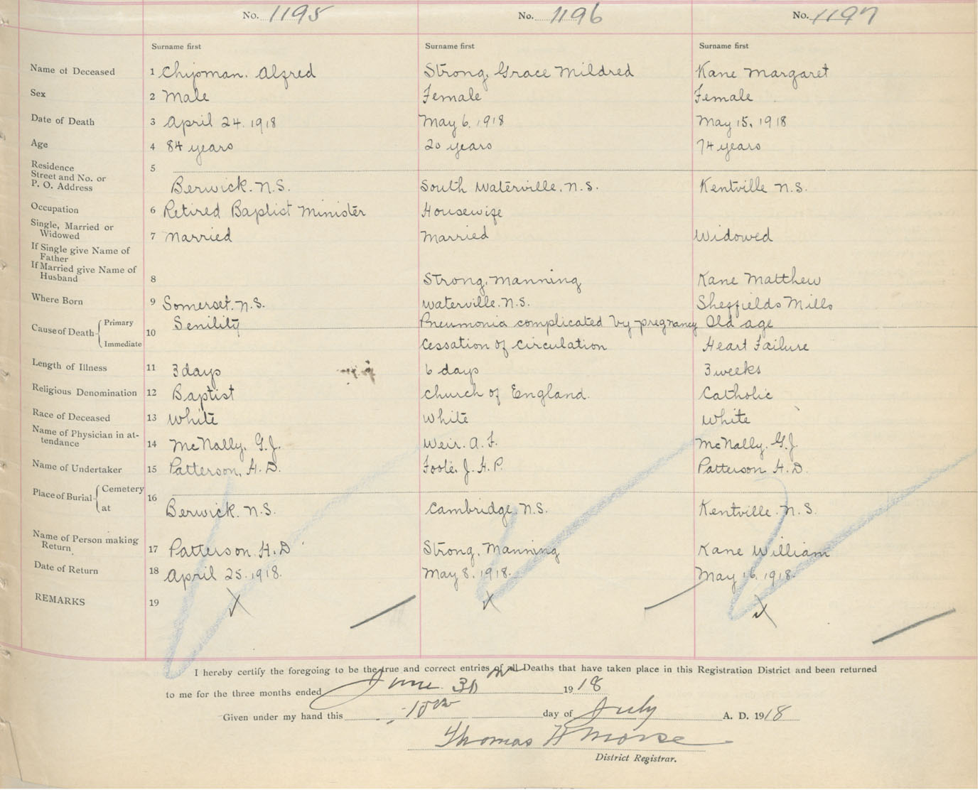 Female Death Registration: Year: 1918 book: 40 page: 419 number: 1197