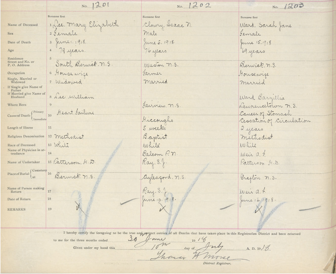 Female Death Registration: Year: 1918 book: 40 page: 420 number: 1203