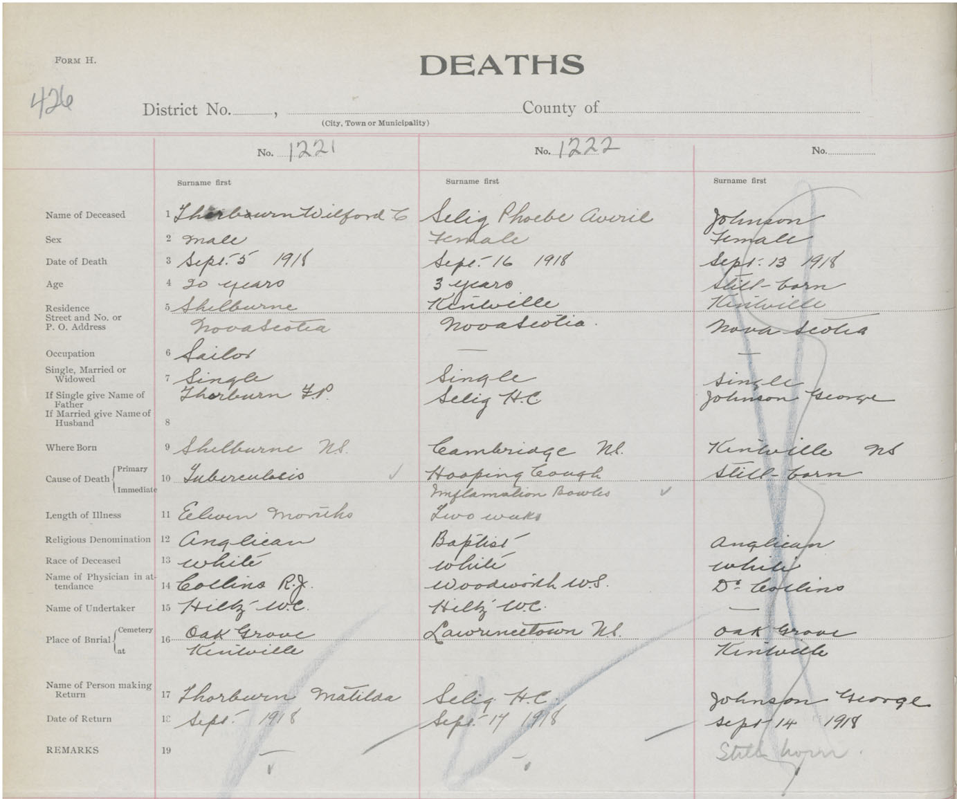Female Death Registration: Year: 1918 book: 40 page: 426 number: 1222