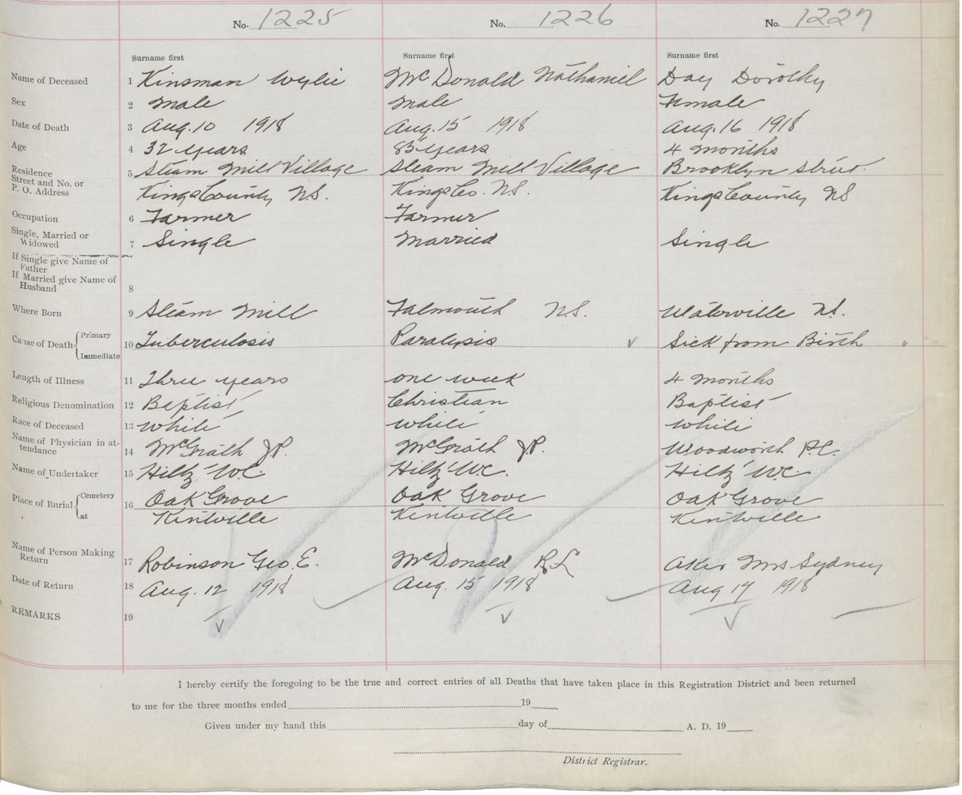 Female Death Registration: Year: 1918 book: 40 page: 427 number: 1227