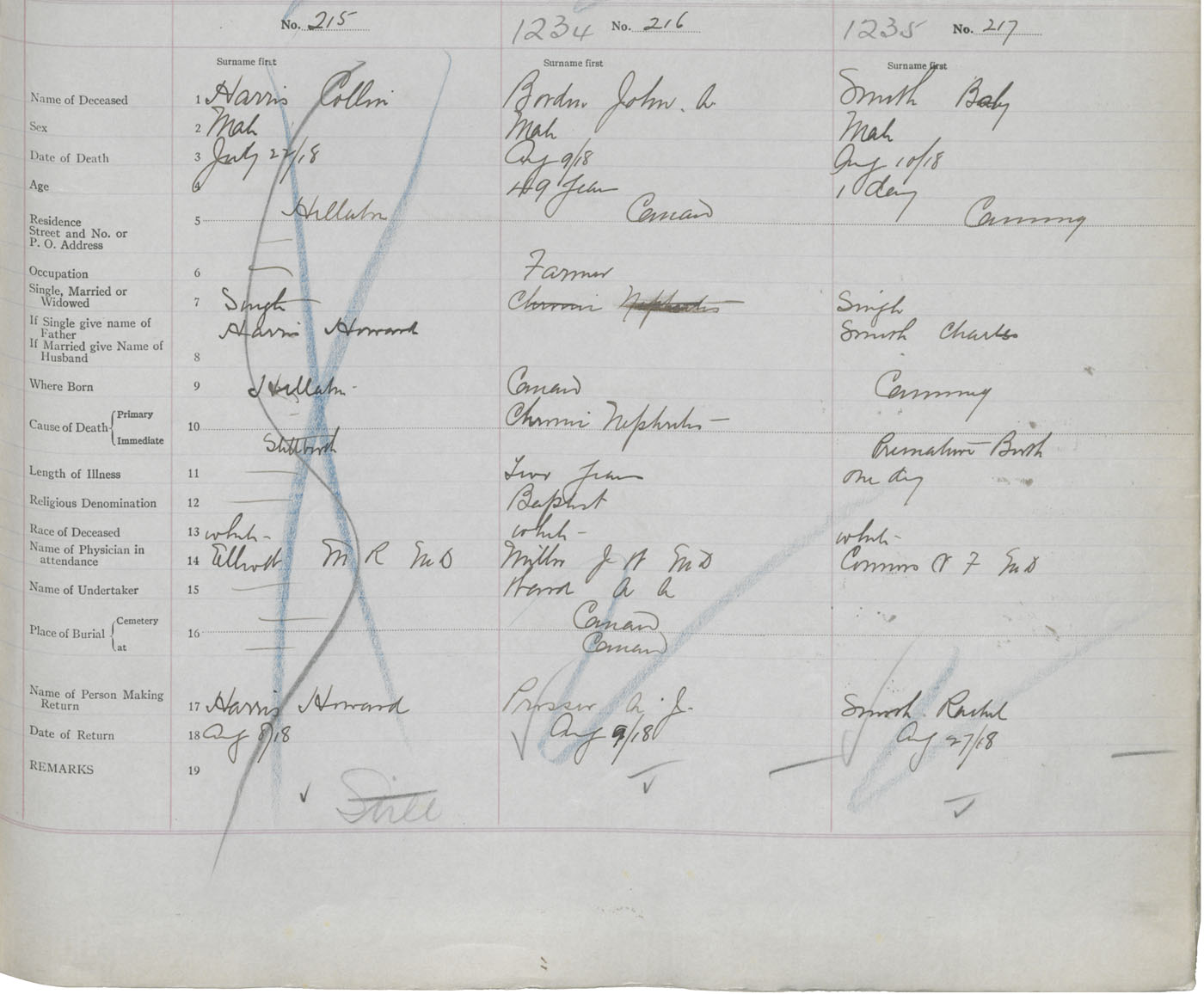 Male Death Registration: Year: 1918 book: 40 page: 429 number: 1235