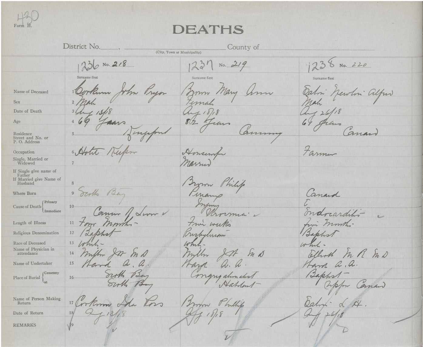 Male Death Registration: Year: 1918 book: 40 page: 430 number: 1238
