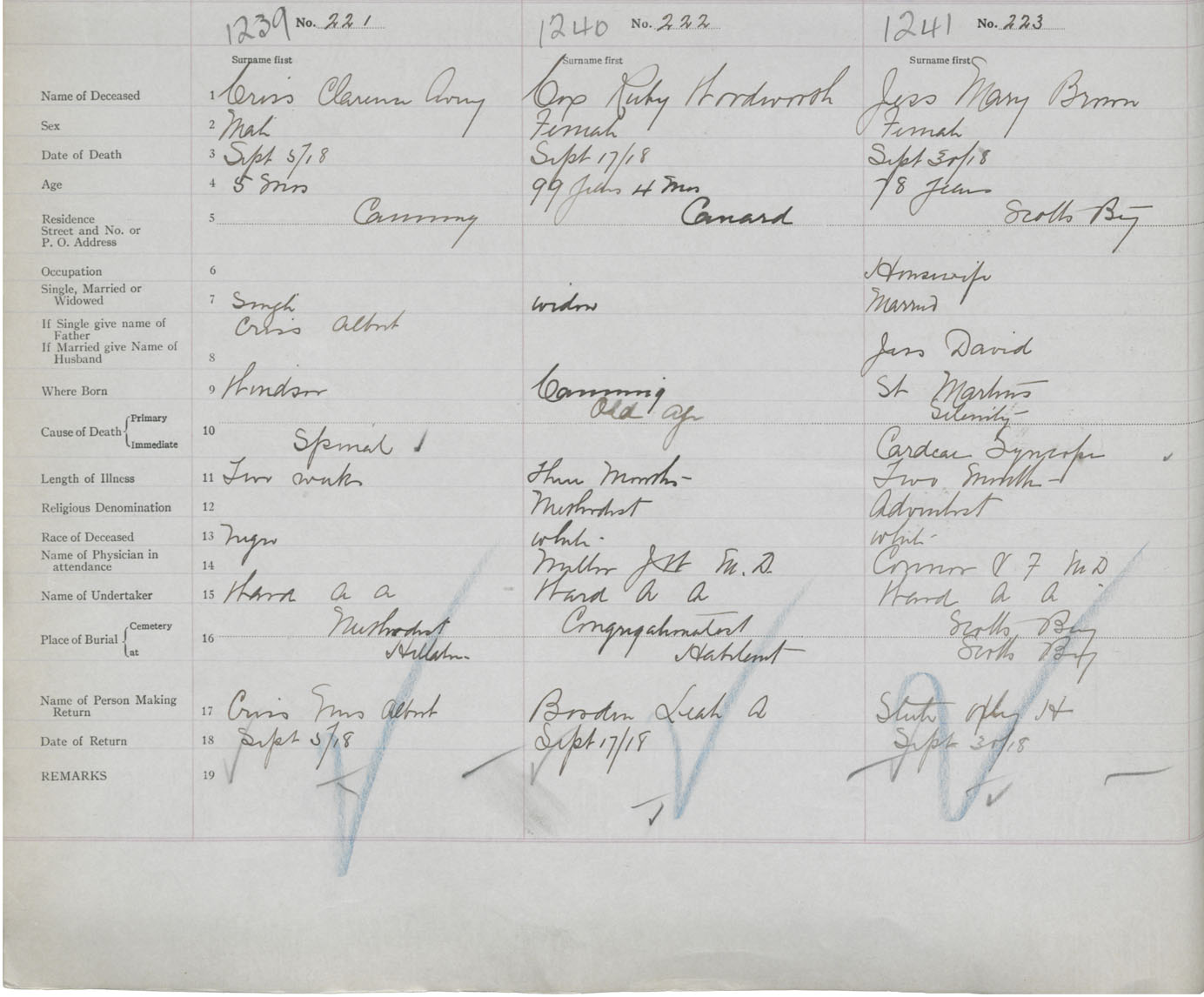 Female Death Registration: Year: 1918 book: 40 page: 430 number: 1241