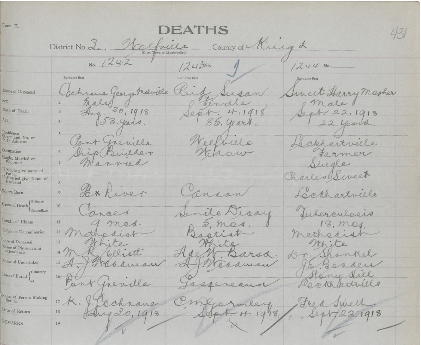 Male Death Registration: Year: 1918 book: 40 page: 431 number: 1244