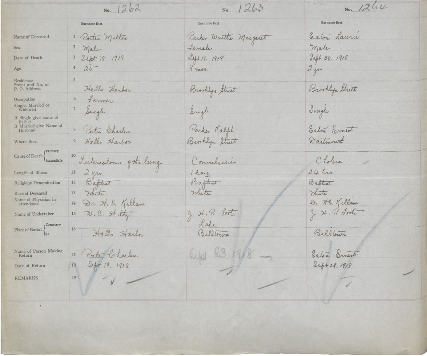 Male Death Registration: Year: 1918 book: 40 page: 434 number: 1264