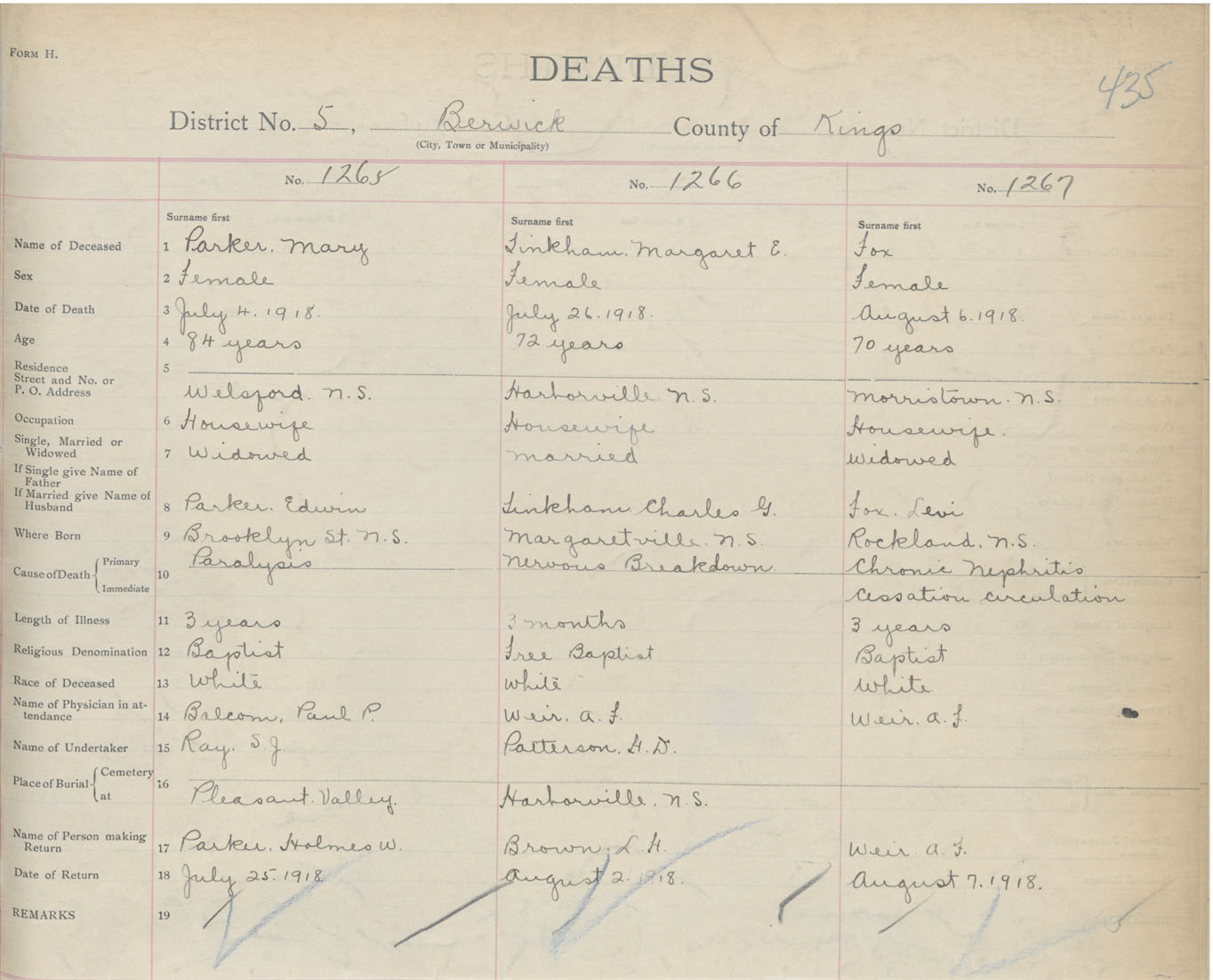 Female Death Registration: Year: 1918 book: 40 page: 435 number: 1267