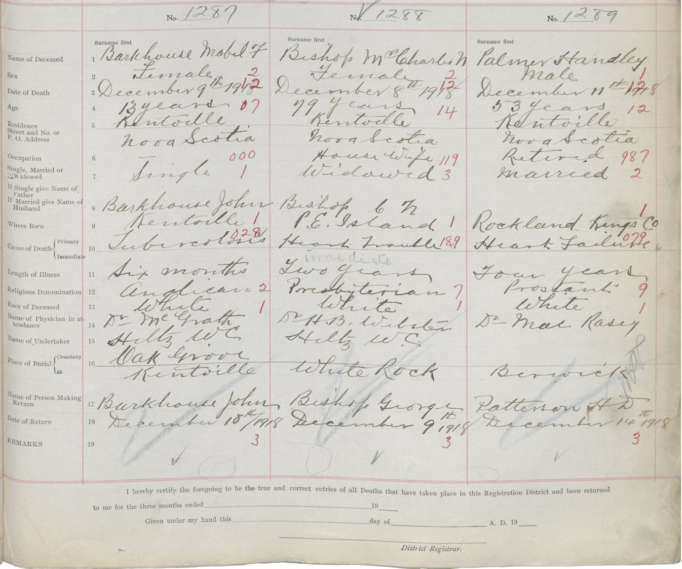 Male Death Registration: Year: 1918 book: 40 page: 441 number: 1289