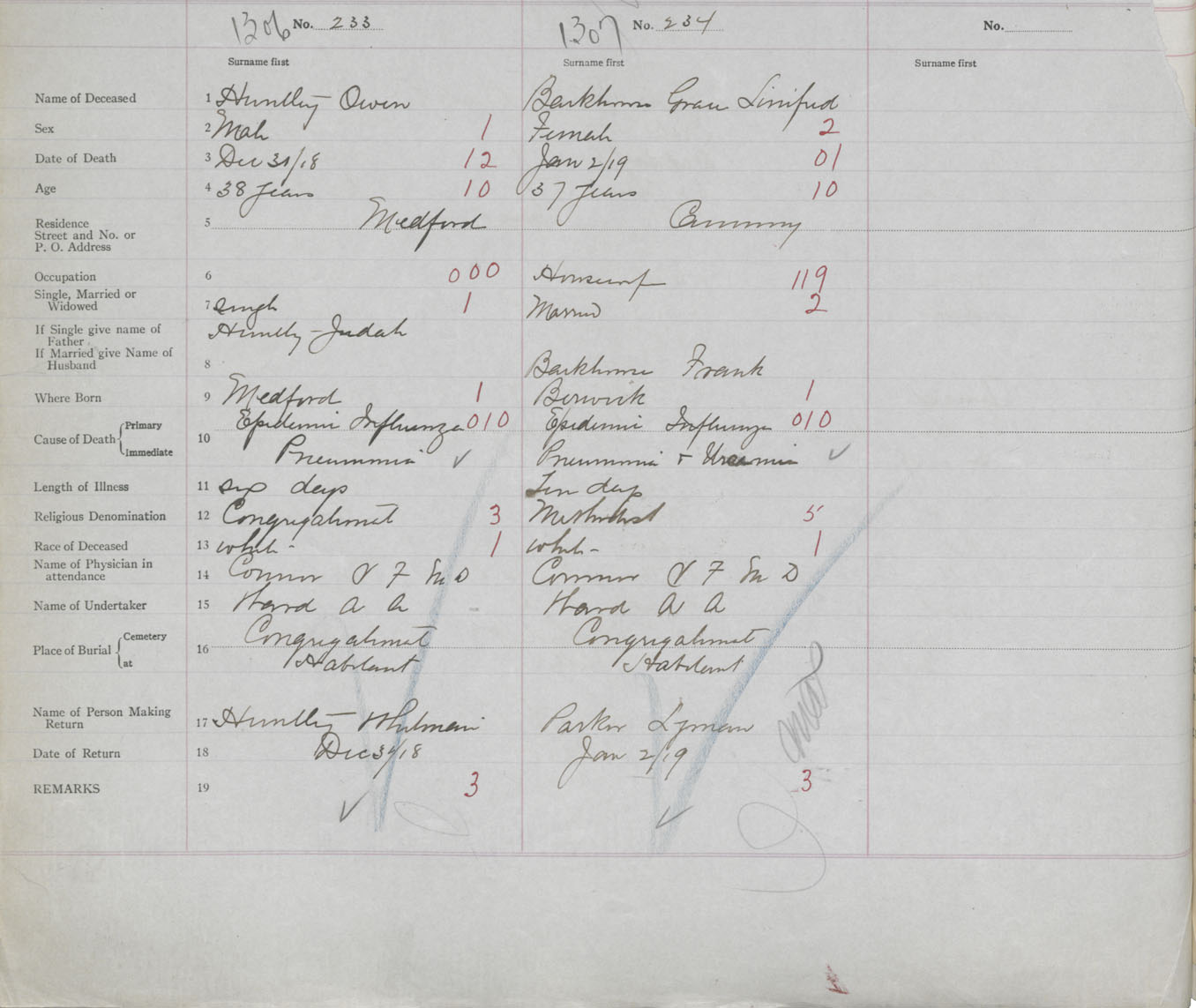 Female Death Registration: Year: 1919 book: 40 page: 446 number: 1307