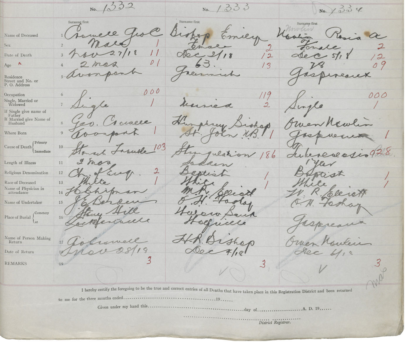 Female Death Registration: Year: 1918 book: 40 page: 451 number: 1334