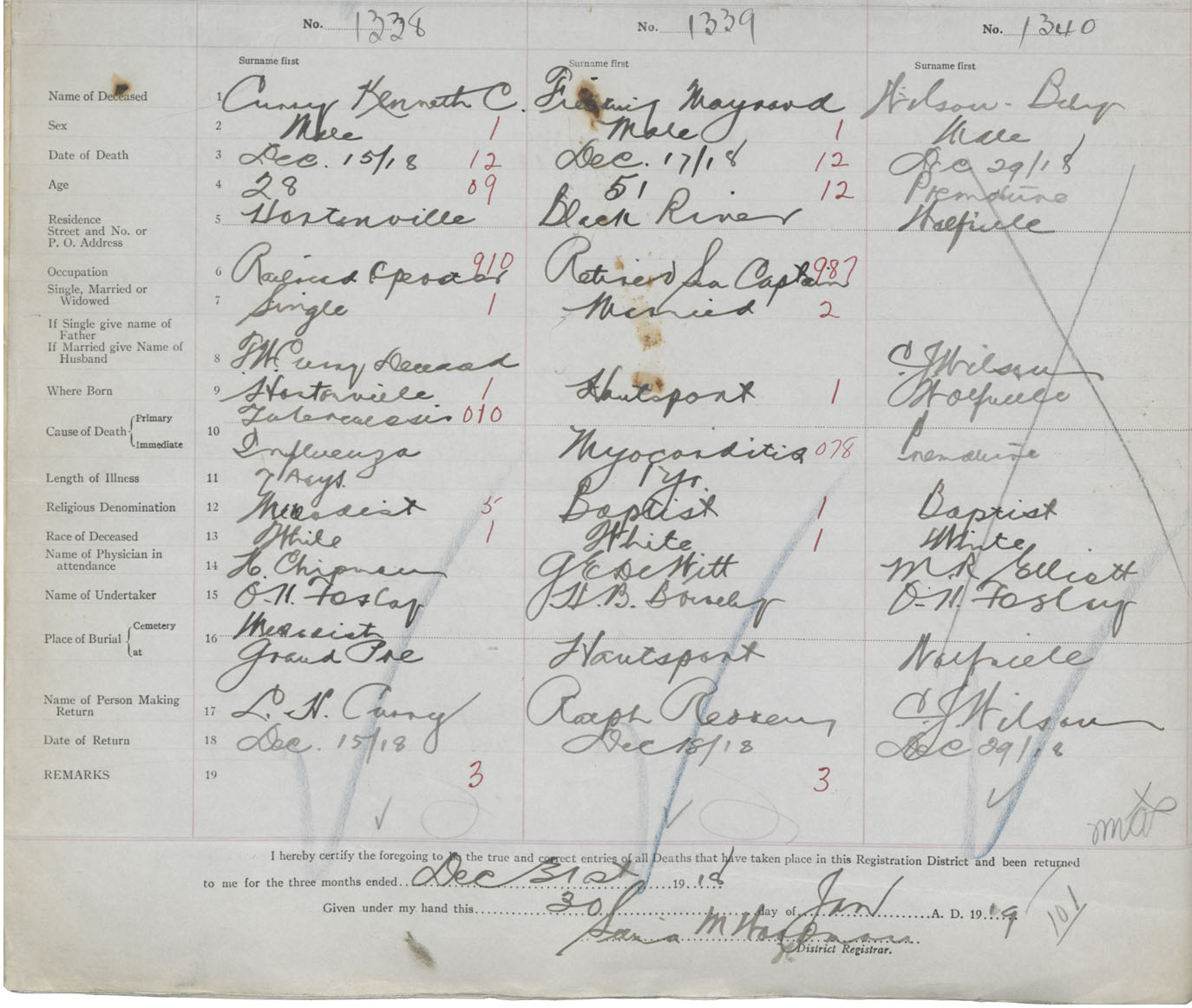 Male Death Registration: Year: 1918 book: 40 page: 452 number: 1340