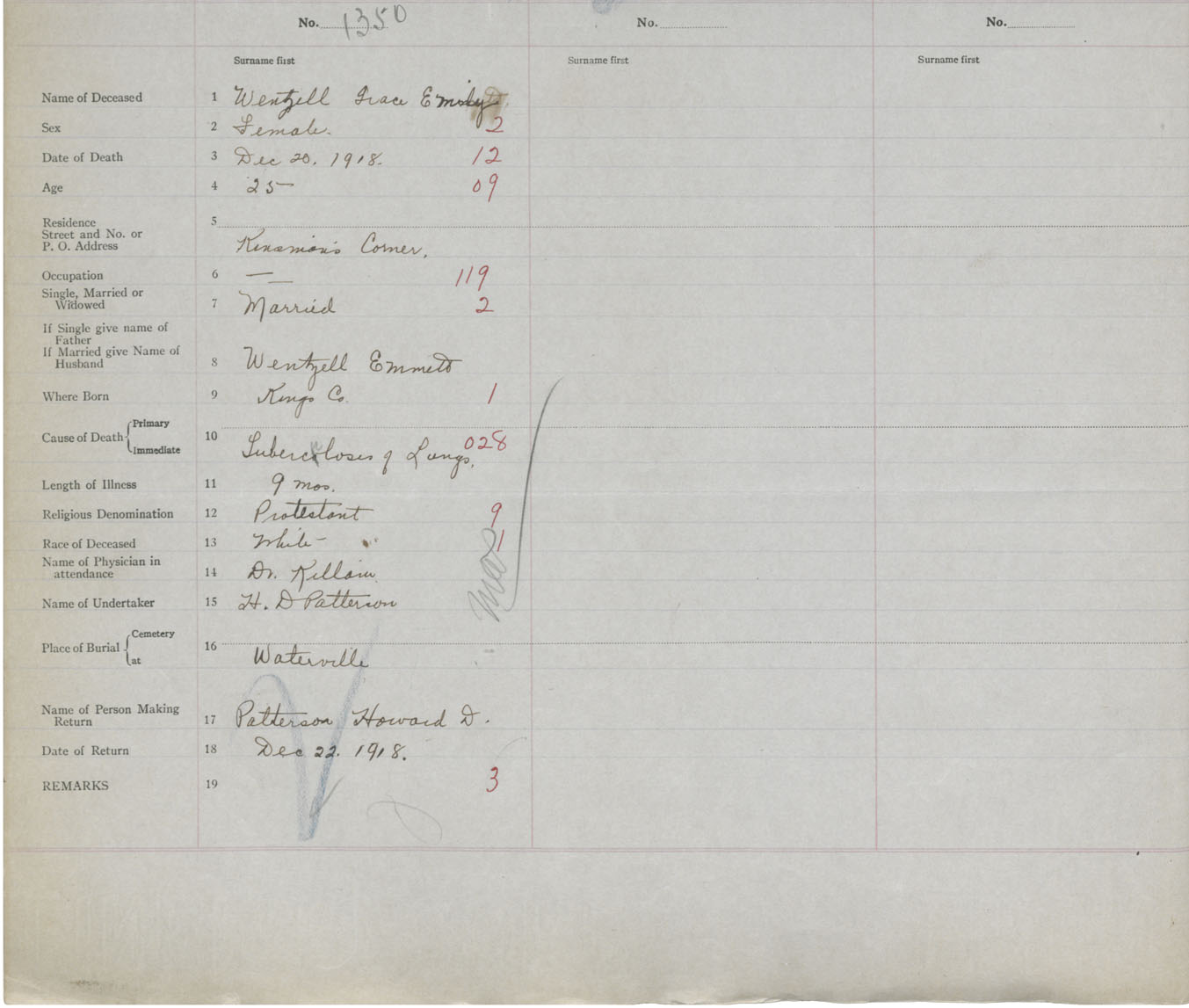 Female Death Registration: Year: 1918 book: 40 page: 456 number: 1350