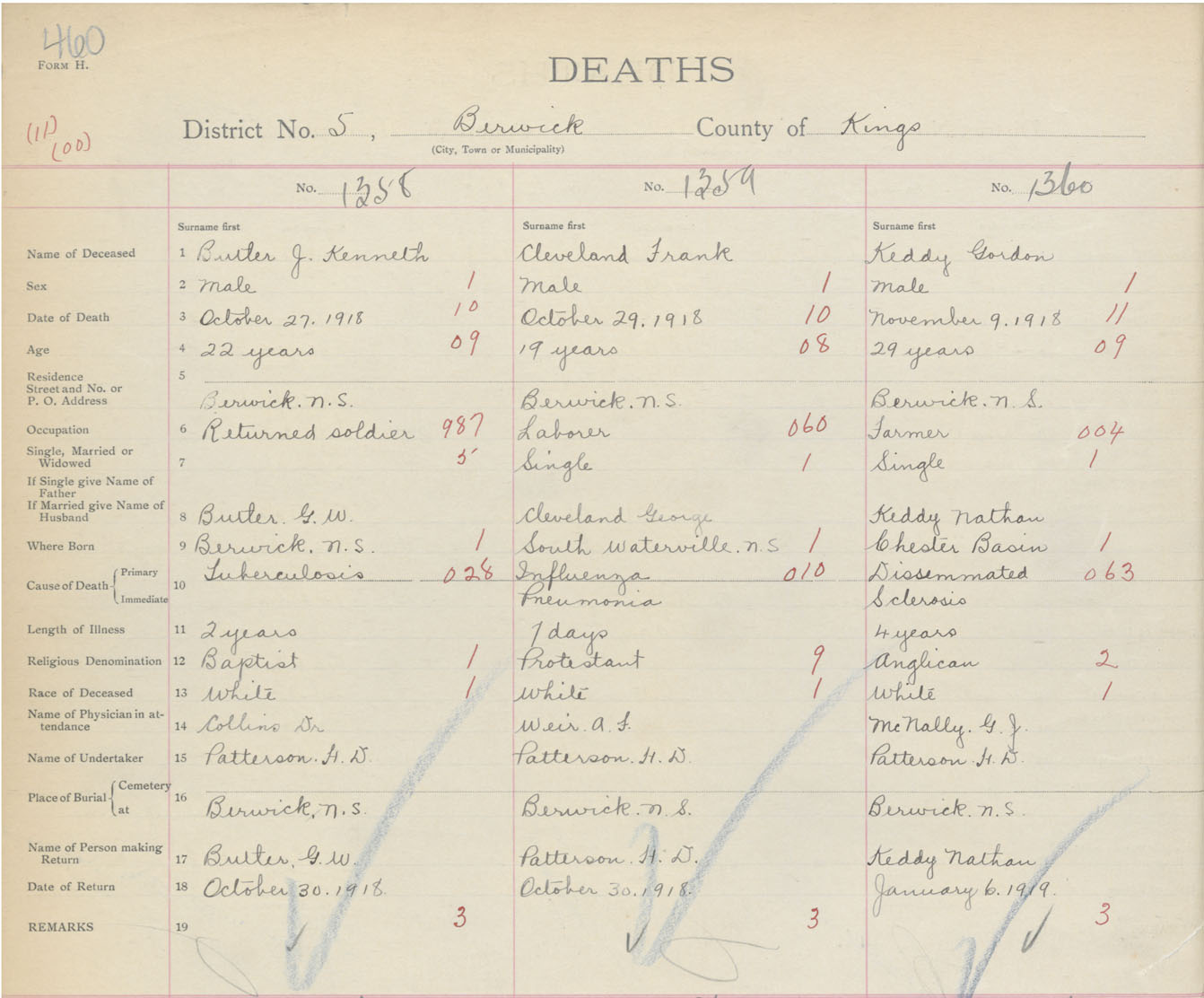 Male Death Registration: Year: 1918 book: 40 page: 460 number: 1360