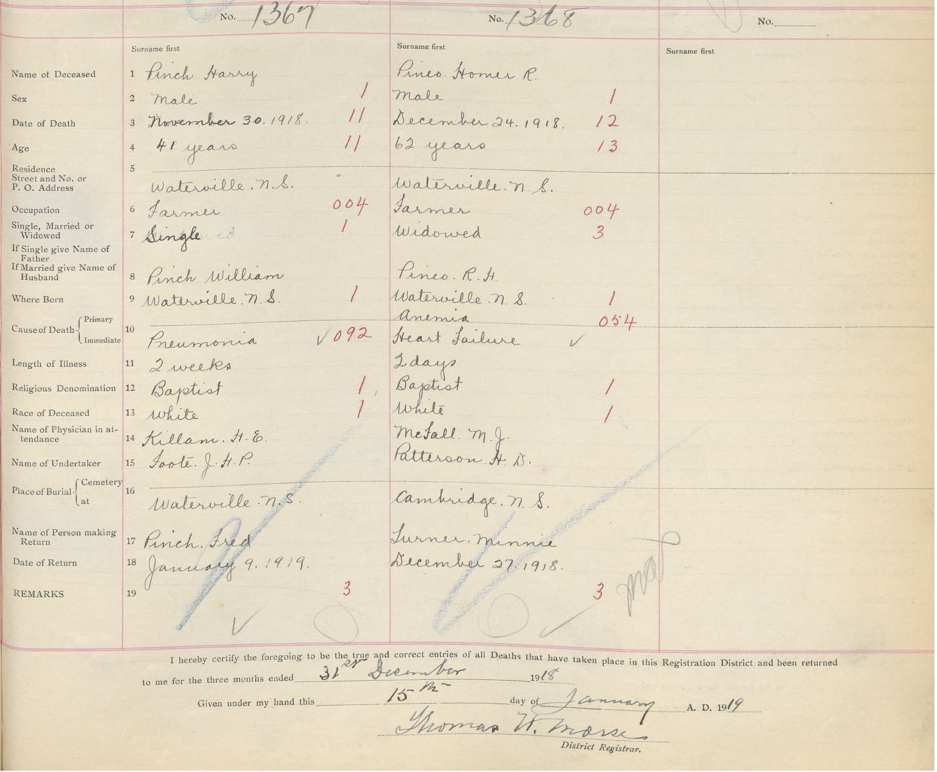 Male Death Registration: Year: 1918 book: 40 page: 461 number: 1368