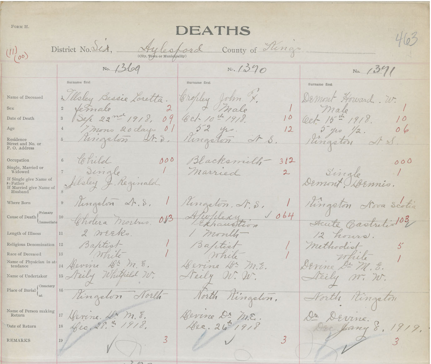 Male Death Registration: Year: 1918 book: 40 page: 463 number: 1371
