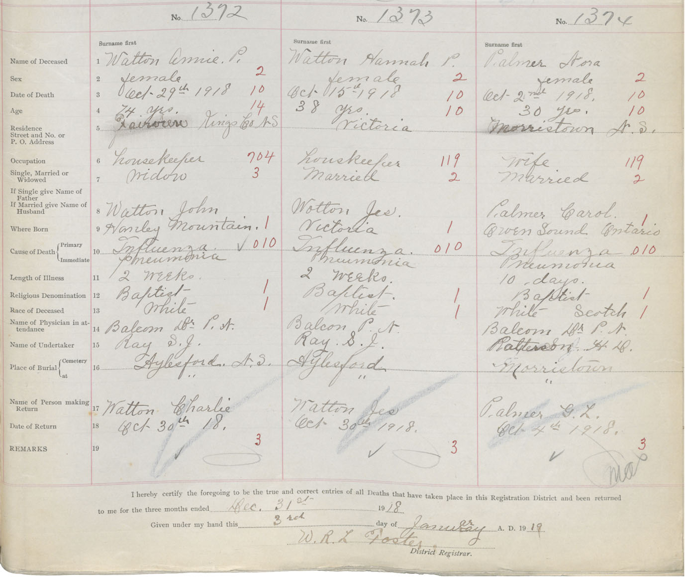 Female Death Registration: Year: 1918 book: 40 page: 463 number: 1374