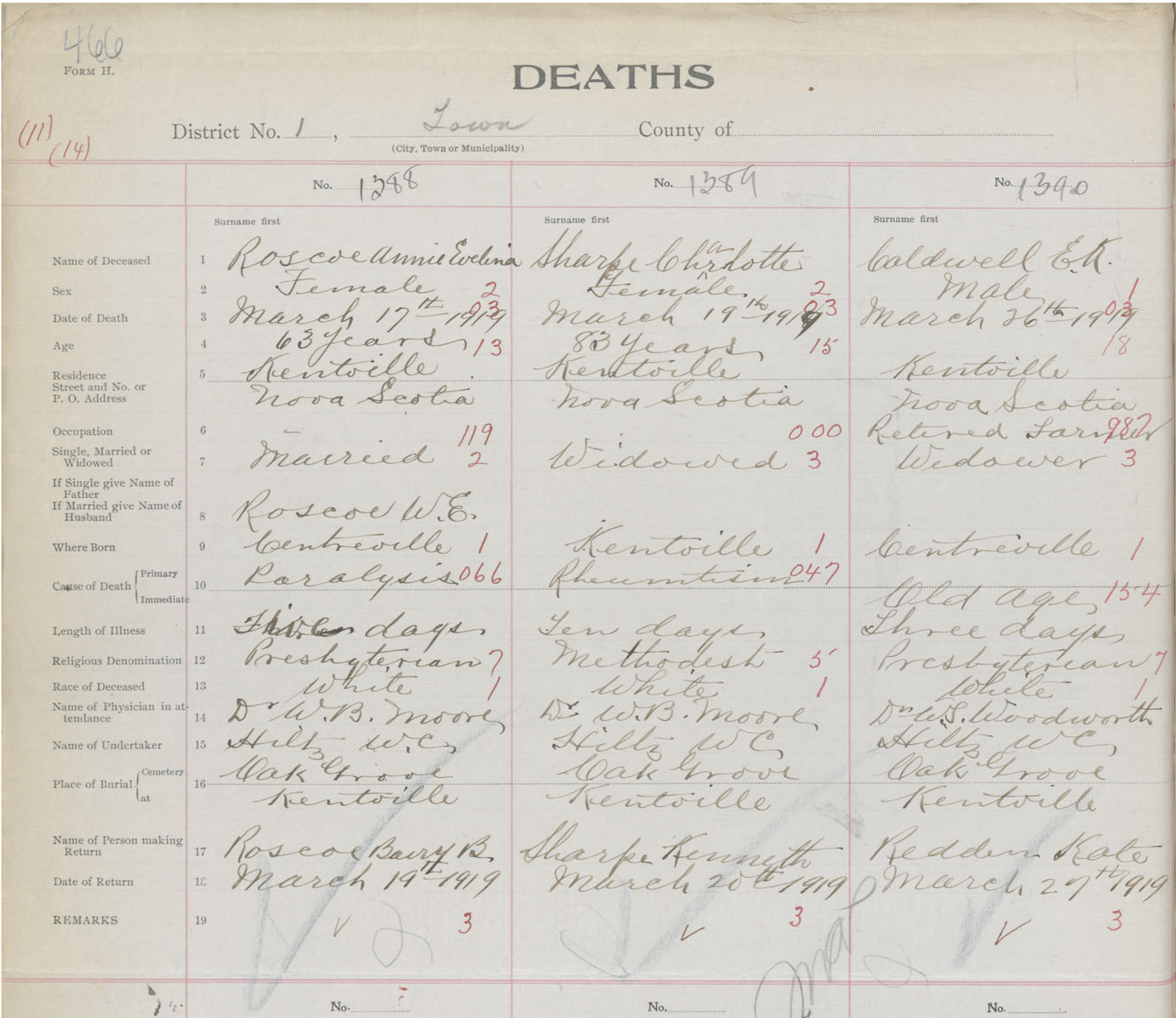 Female Death Registration: Year: 1919 book: 40 page: 466 number: 1388