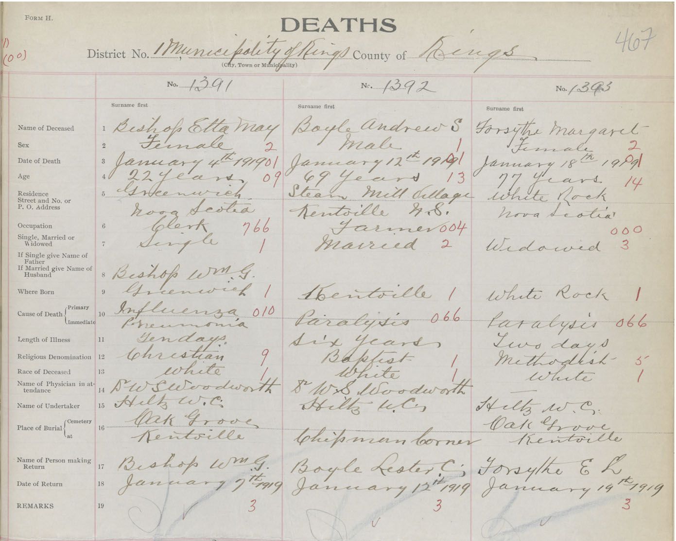 Female Death Registration: Year: 1919 book: 40 page: 467 number: 1391