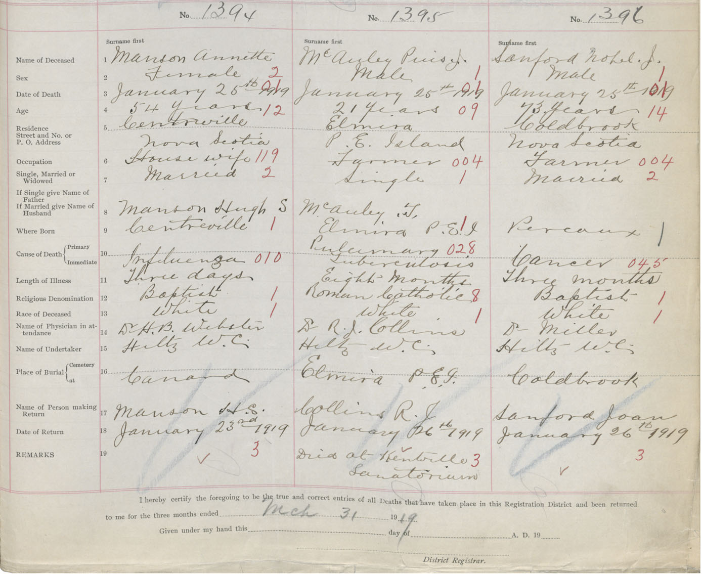 Female Death Registration: Year: 1919 book: 40 page: 467 number: 1394