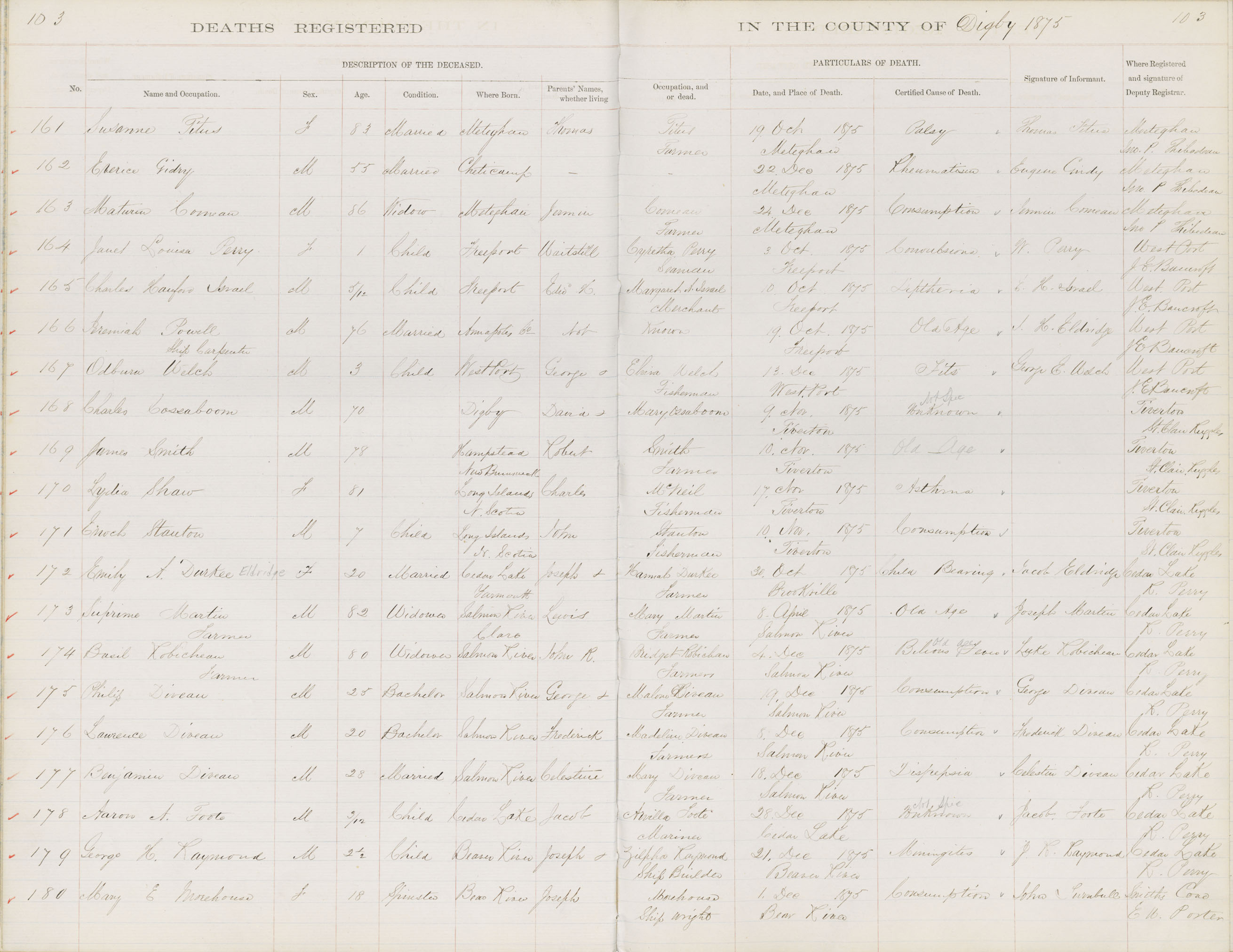Death Registration: Year: 1875 book: 1806 page: 103 number: 180