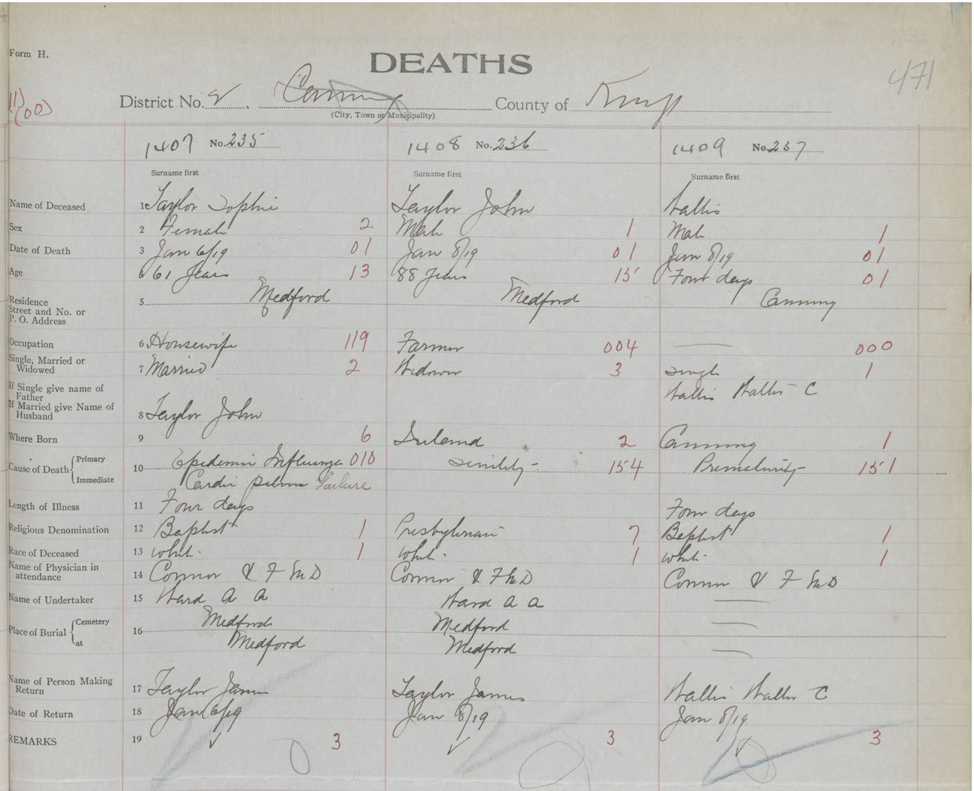 Female Death Registration: Year: 1919 book: 40 page: 471 number: 1407