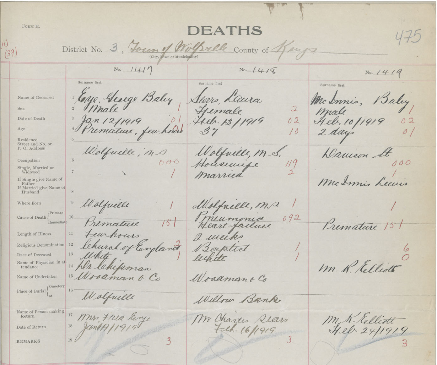 Male Death Registration: Year: 1919 book: 40 page: 475 number: 1417