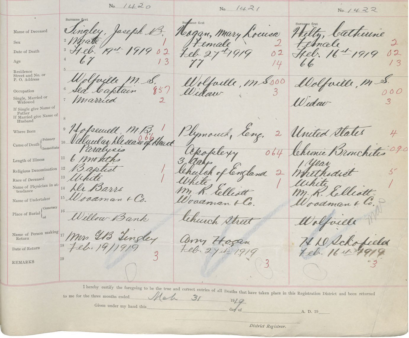 Male Death Registration: Year: 1919 book: 40 page: 475 number: 1420