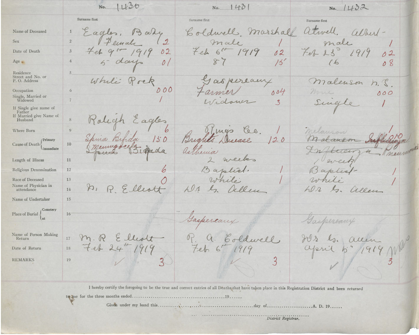 Female Death Registration: Year: 1919 book: 40 page: 478 number: 1430