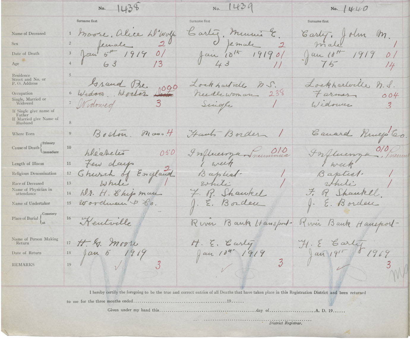 Female Death Registration: Year: 1919 book: 40 page: 480 number: 1438