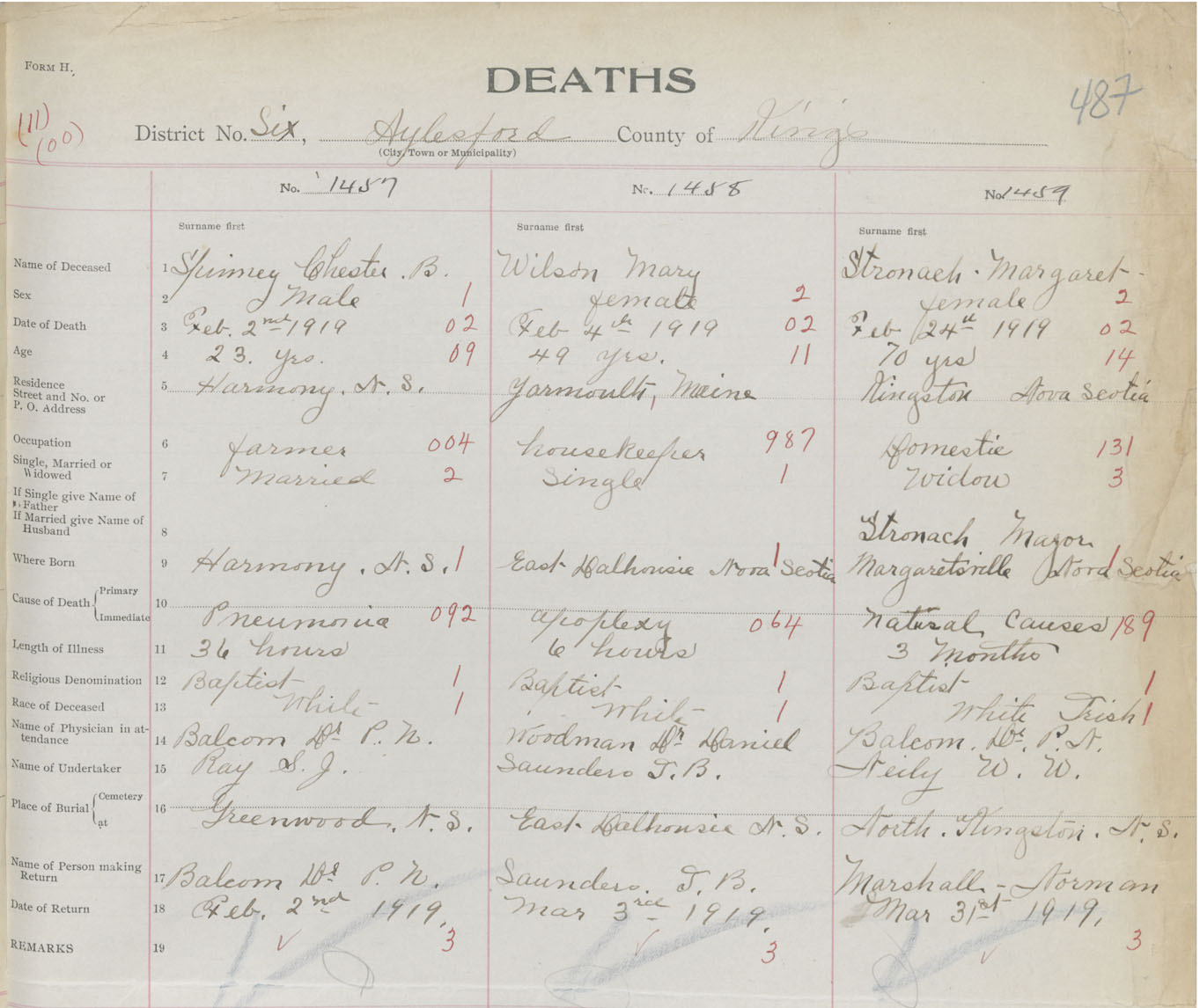 Male Death Registration: Year: 1919 book: 40 page: 487 number: 1457