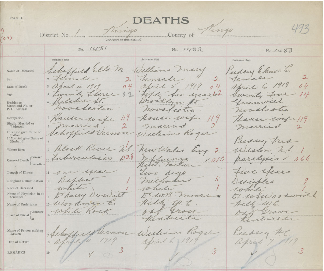 Female Death Registration: Year: 1919 book: 40 page: 493 number: 1481