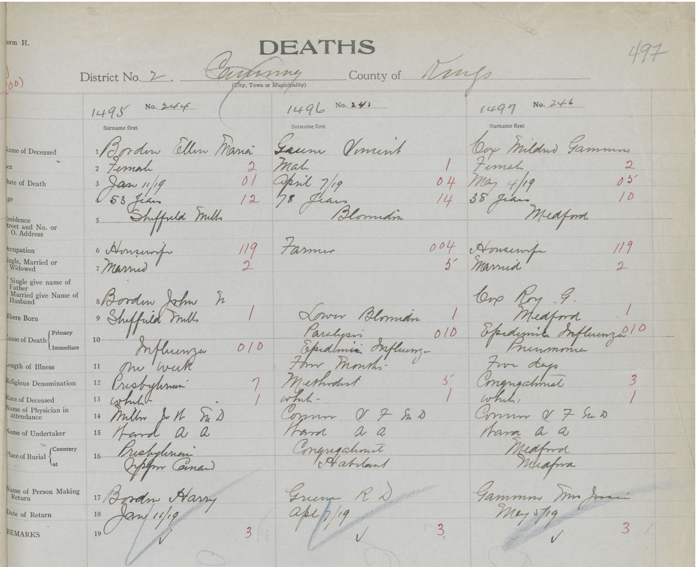 Female Death Registration: Year: 1919 book: 40 page: 497 number: 1495